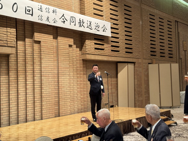 「第60回信友会・通信科合同歓送迎会」を令和6年2月23日(日)、コロナ禍により令和元年を最後に開催を見送ってきたため5年ぶりに「グランドヒル市ヶ谷 瑠璃の間」での開催となりました。 まず、総会では令和5年度事業報告、令和6年度事業計画(案)の報告・承認、長期会費未納者の退会に関する会則改正案の承認が行われ、役員交代により成田会長→河本会長へバトンが引き継がれました。その後、引き続き陸幕通電課長弥頭1佐から会員に対して講話をいただいたのち、開場を瑠璃の間に移して「合同歓送迎会」に移行、陸幕通信電子課長弥頭1佐の開会の辞、現役発起人代表 通信学校長奈良岡将補の挨拶、通信科退官者紹介、退官者代表堀江元将補の挨拶、信友会河本新会長の挨拶、教育訓練研究本部長廣惠陸将のご祝辞をいただくとともに、出席された80歳以上の会員の皆様の紹介、システム通信団長青木将補のご祝辞、祝電披露、入校学生の紹介、そして現役隊員等との歓談の後、補統通信電子部長鷺谷1佐の万歳三唱をもって盛会のうちにお開きとなりました。 信友会事務局 |