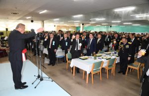 16日は前夜懇親会、17日は駐屯地グラウンドにおいて「記念式典・訓練展示」が行われ、続いて駐屯地食堂において、「祝賀会食」が盛大な中にも和やかな雰囲気の下に行われました。 |